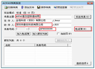 表示该联系人信息中不含传真号码,只有傲发号,可以马上发送免费传真; |