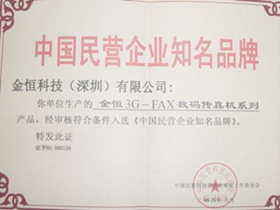 3G-FAX系列产品被评为《中国民营企业知名品牌》
