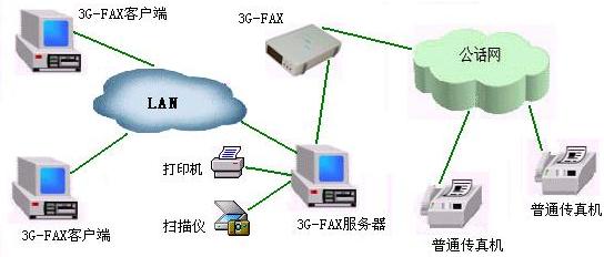 3G-FAX局域网版应用实例图(客户端可多至数百台)