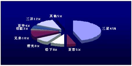 2、 其他如三星、三洋、理光等品牌在内部体制上都出现了一定的问题削弱了本身竞争力。