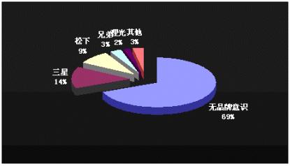 1、 目前市场上并无绝对领导品牌--根据统计,市场占有率达到37%以上可以成为市场领导品牌;