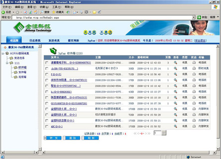 说明:WEB收发传真就是通过IE浏览器直接收发传真,你可以在任何一台电脑中输入服务器端的IP地址或网址,登录后即可收发传真。